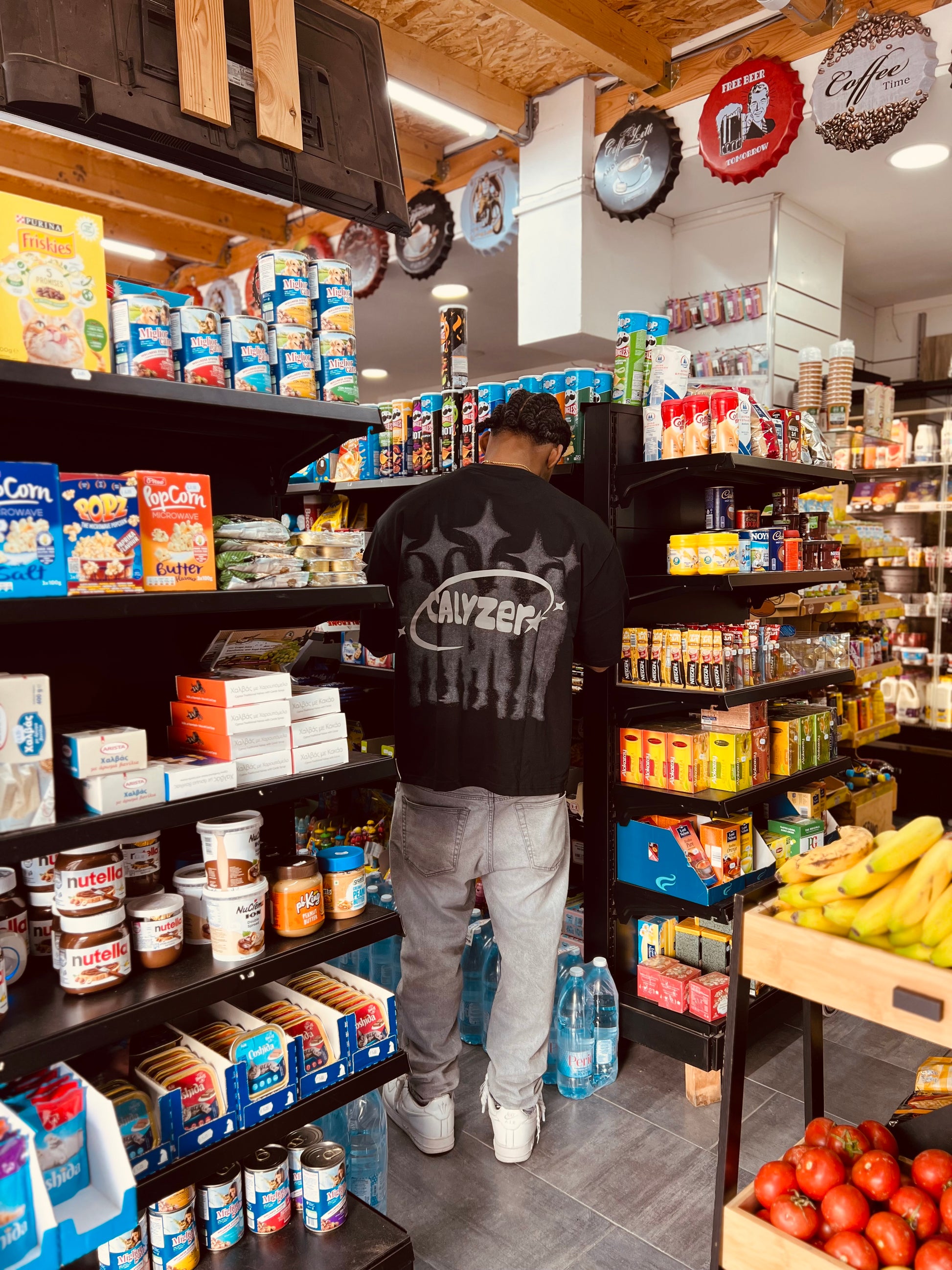 The deep black base sets the stage for our bold back graphic and clean front detail, representing the Calyzer® mindset — minimal in design, maximal in statement. Whether you’re at the skate park, in the city, or just kicking back, this tee keeps your look sharp and laid-back at the same time.