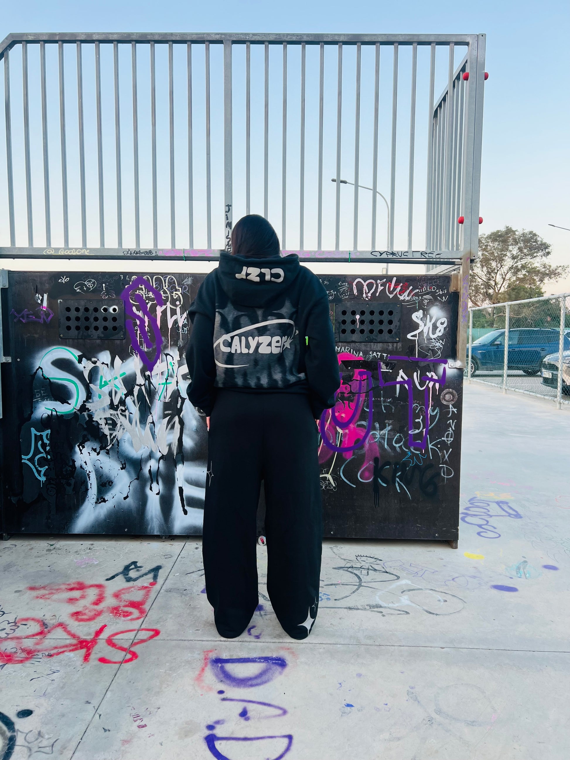 Own the streets with the Calyzer® Black Orbit Tracksuit — where minimal design meets premium comfort. This matching hoodie and sweatpants set is built from a heavyweight cotton blend that feels as good as it looks. Oversized for that effortless streetwear fit, it features bold Calyzer® logo prints on both hoodie and pants, delivering a statement look without sacrificing comfort.